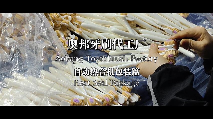 自动机热合包装是高效的半成品包装环节,利用全自动热合包装设备,将修剪好的牙刷与包装材料精准对位,通过高温热合技术,把牙刷密封包装好,包装严实平整、密封性好,既能防尘防潮,又能保证牙刷干净卫生,包装效率高且品质稳定。